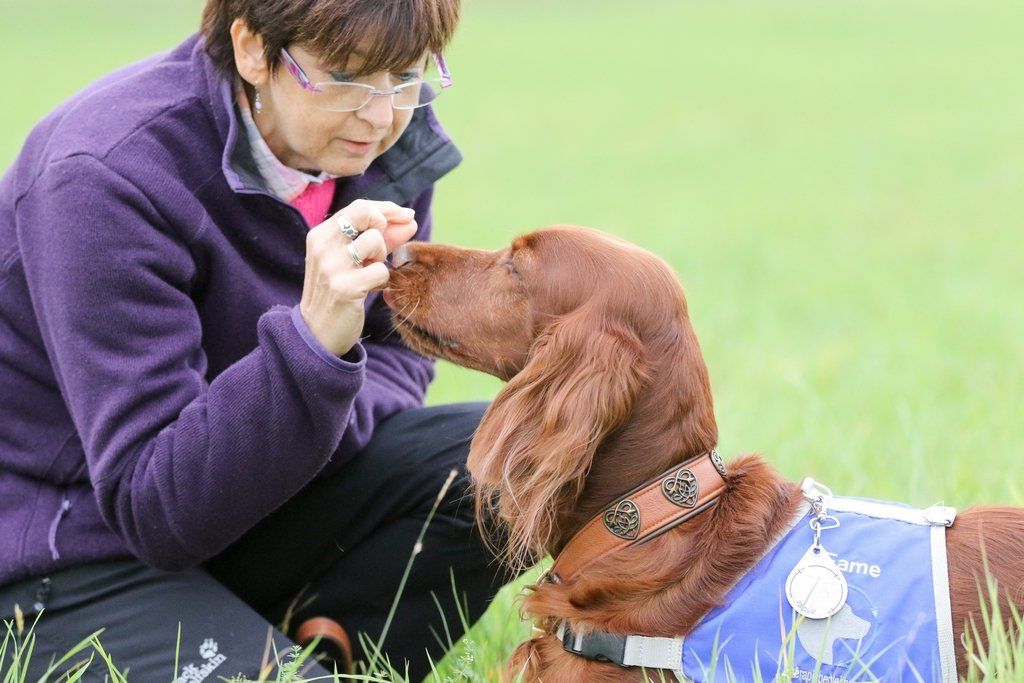 Bei Fame handelt es sich um unsere Irish Setter Hündin, die zum Therapiebegleithund ausgebildet wurde.